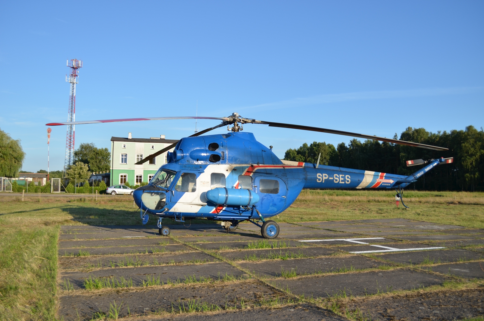 Lądowisko Śmigłowca. Na wschód od stojanki baza mieszkaniowa dla pilotów, miejsce na cysterne z paliwem. Stojanka wyposażona w rękaw.